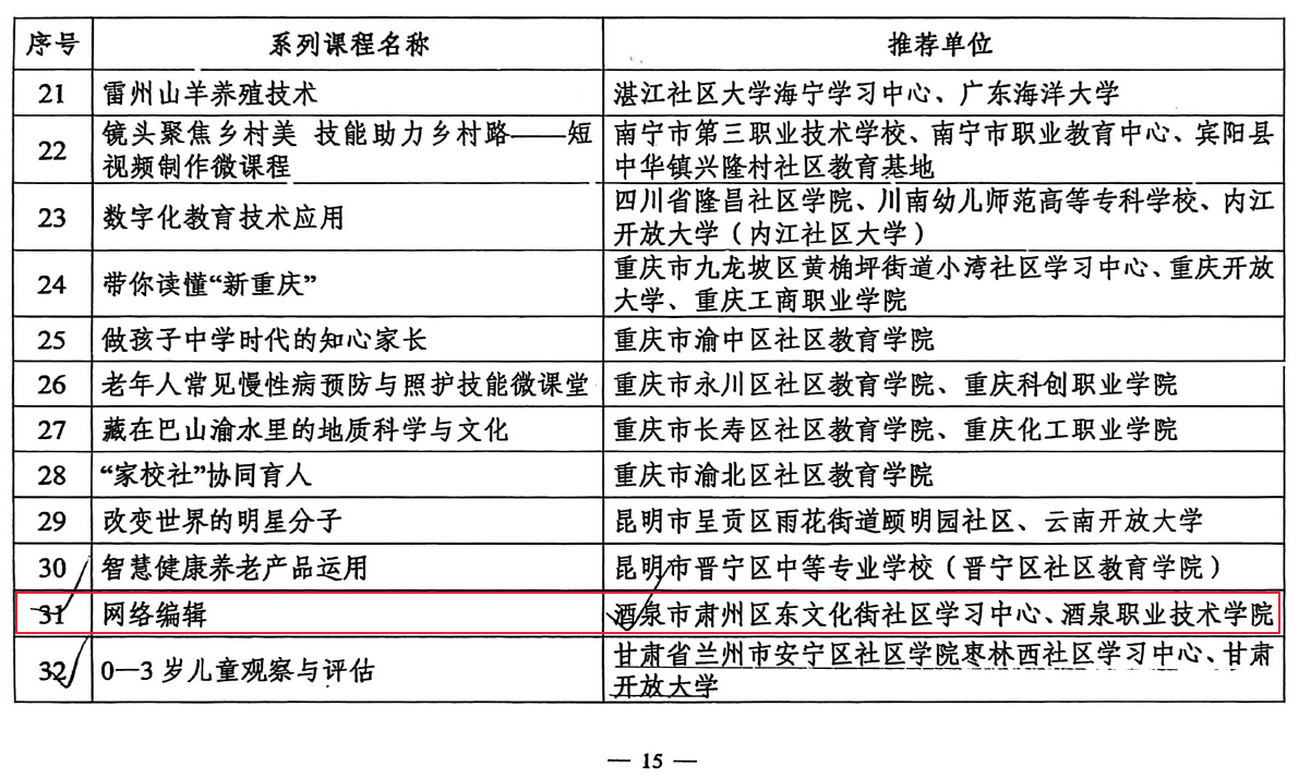 院系动态 > 正文beat365手机版官网《网络编辑》等2门课程 入选教育部县域社区学习中心品牌课程