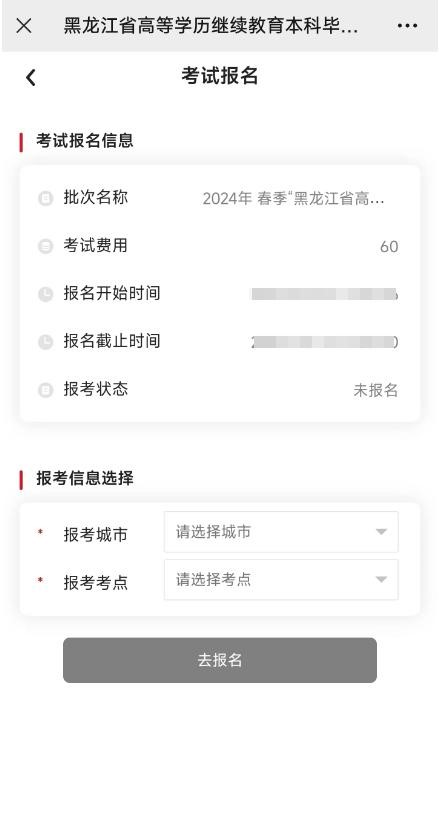 4.点击报名考试进入报考界面,选择学生报考的考点,如下: