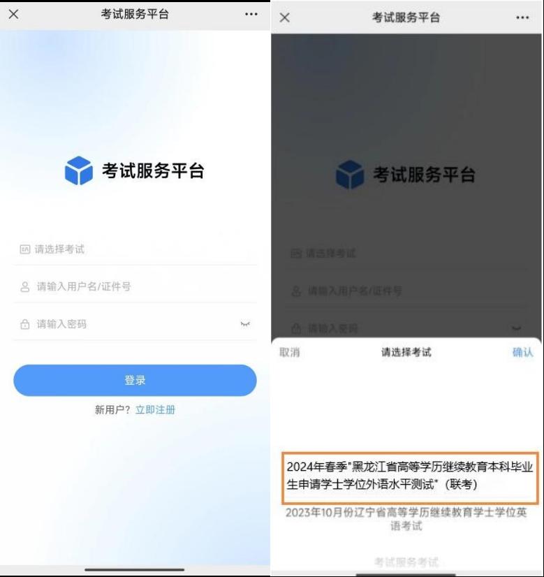 2.进入到学生登录界面,选择本次的考试,输入本人用户名(证件号)和密码(身份证号后6 位)进行登录,如下: